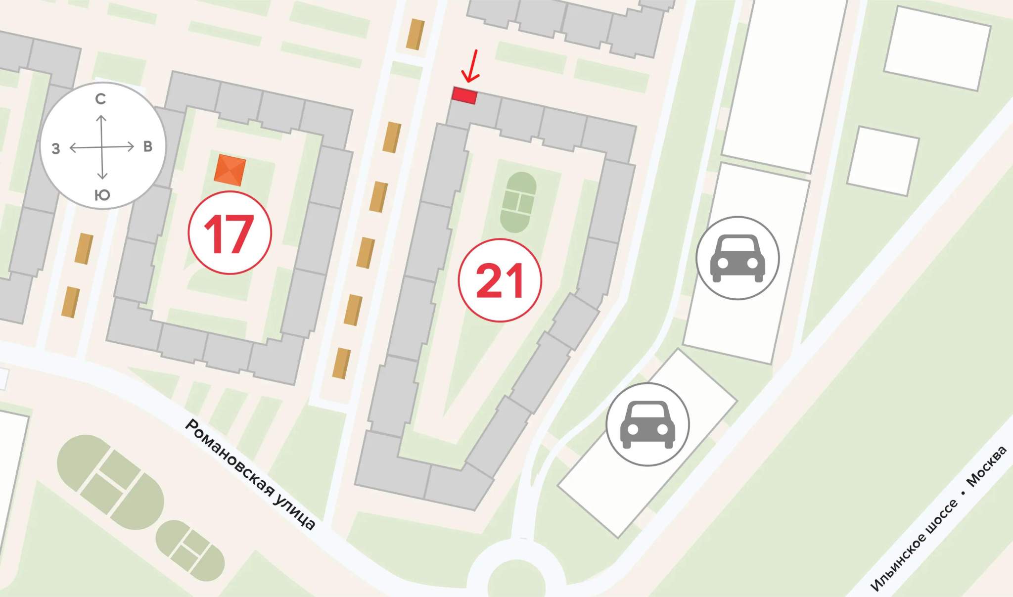 На карте: Московская область, деревня Глухово, Романовская улица, д.21